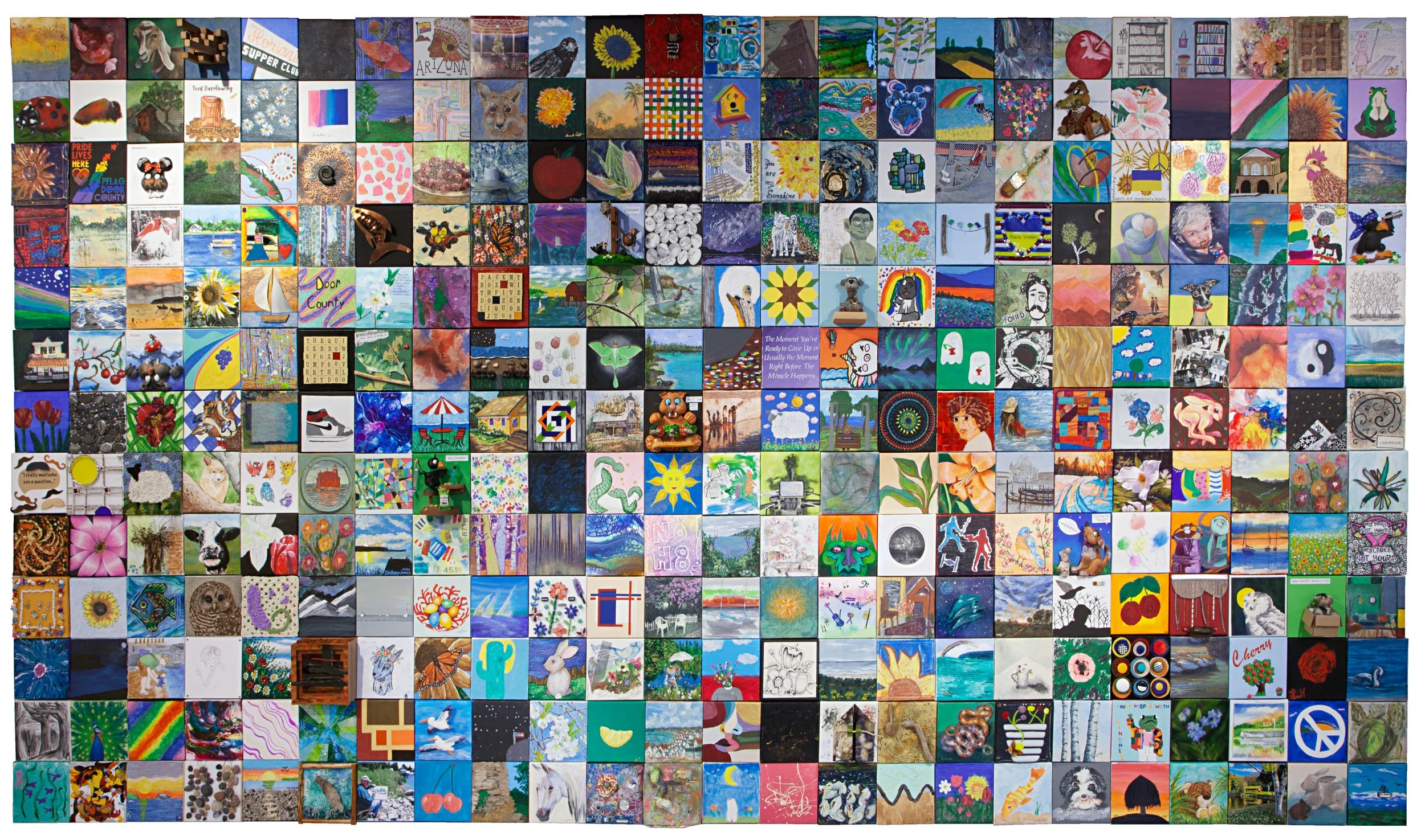 This annual exhibition features work by more than forty established local and regional artists, highlighting two works from each artist, one of which is donated by the artist for the Collector’s Choice Benefit, the organization’s largest special event fundraiser. Collectors find this to be a wonderful opportunity to add to their personal collection of art. The 15th Annual Community Mosaic Project was also unveiled during this exhibition. This hugely popular community-driven art project included 312 individual works of art, and all canvases are supplied by Artists Guild LLC in Sturgeon Bay.